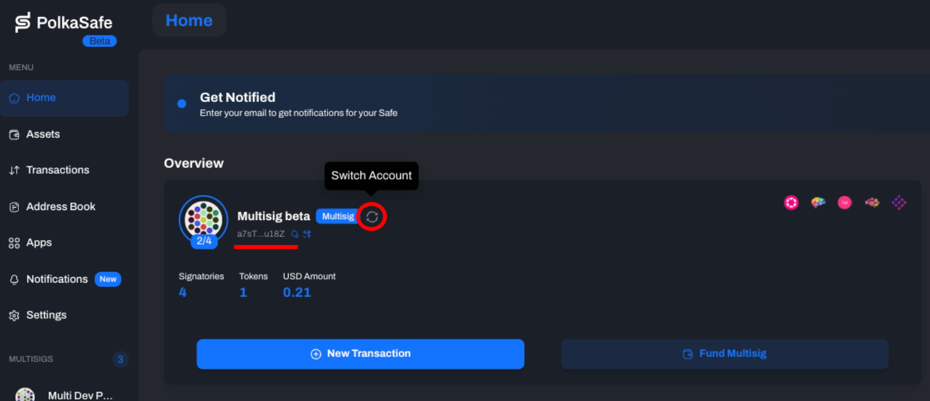 (Optional) Enabling Proxy Signatory Management for Your Multisig Account on PolkaSafe