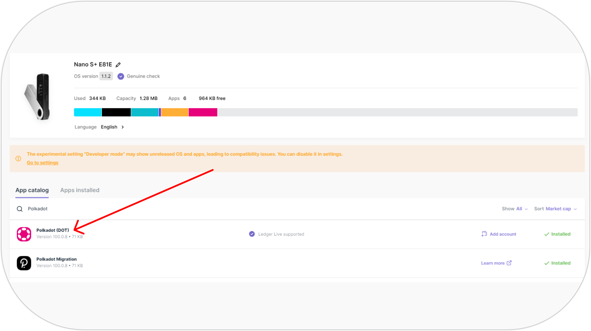 My Ledgerto access your device; - Search for Polkadot (DOT) (Version