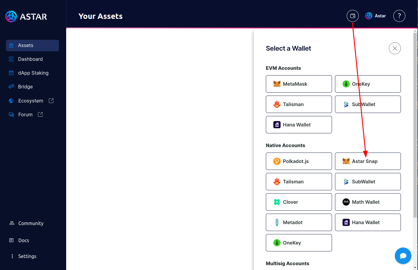 If you're not using Astar Snap version 0.9.1, please update it here before transferring your assets.
