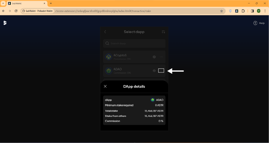 2. Choose the token that you would like to stake, in this case, ASTR.